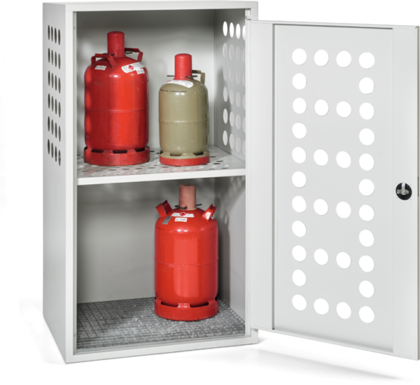 perforated doors and side panels for natural ventilation zinced sheet steel for max. 8 x 33 kg gas cylinders Dim in mm: 840 x 690 x 1500 (W x D x H) with lock.