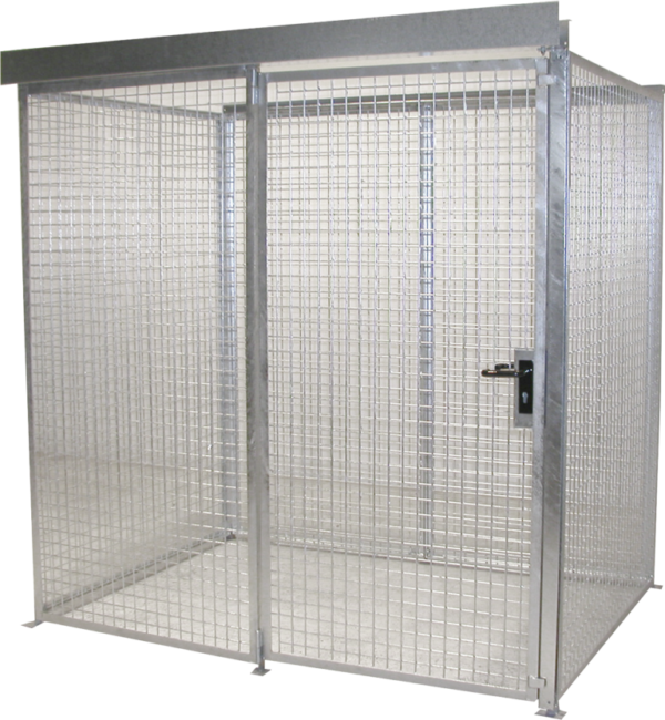 for 48 gas cylinders dia = 220 mm For outdoor storage of gas cylinders in accordance with the regulations. surface hot-dip galvanised according to EN ISO1461 delivery in modular system with assembly instructions for self-assembly dimensions (outside) in mm: 2100 x 1500 x 2180 (WxDxH) Design according to TRGS 510.
