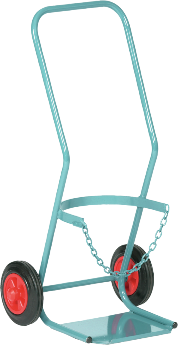 With solid rubber tyres. Maximum number of propane gas cylinders: 1 x 11 kg. Blue painted steel tube construction. Including securing chain. Finger guards for safe grip. Dimensions (W x D x H) approx.: 450 x 550 x 1030 mm