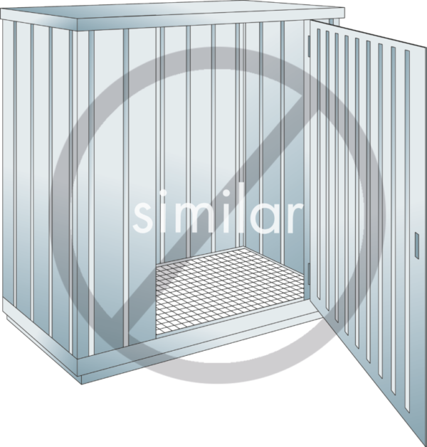 galvanised version with natural ventilation Outer dim.: 915 x 2350 x 2340 (WxDxH in mm) Capacity: 3000 l Approval for storage of water polluting liquids WGK 1 – 3, flammable liquids, F+, F outdoors or in building in accordance with the specific fire protection regulations. Construction of container: