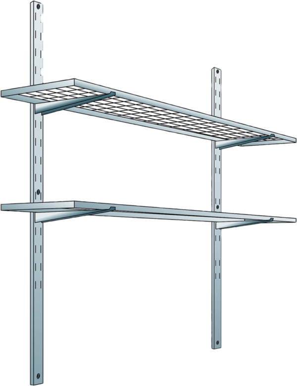 For safety storage containers. Dimensions: approx. 2000 x 500 (WxD in mm) consisting of: 2 shelving uprights 4 consoles (adjustable every 140 mm) 2 gratings Load bearing capacity per grating: 120 kg for for uniformly distributed load